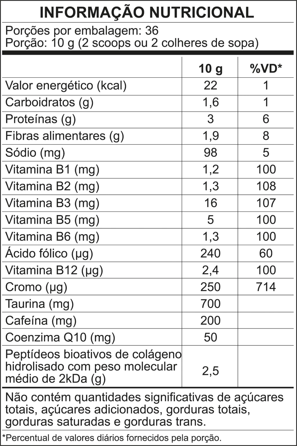 Suplemento alimentar em pó de: Taurina, Cafeina, Colágeno, Coenzima Q10, Cromo, Ácido fólico, Vitaminas B1, B2, B3, B5, B6, B12, Proteinas. A fórmula do Drenoffee conta com mais ingredientes e um sabor irresistível de Chocolate Belga. Este blend conta com nutrientes premium que combinados irão te ajudar a desenvolver todas as suas atividades do dia com mais energia e sabor.